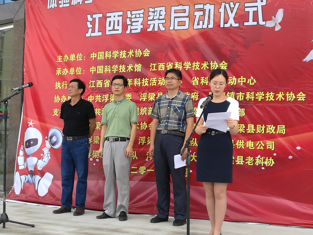 7月14日上午,“体验科学”——中国流动科技馆全国巡演江西浮梁站启动仪式在浮梁县老年大学举行。景德镇市科协主席汤武辉、浮梁县委副书记魏伟、副县长徐新颖、县关工委主任吴木才等出席启动仪式。县巡展活动领导小组成员单位负责人、教师及学生代表、县科协全体工作人员、科普志愿者以及新闻媒体共100余人参加了此次活动。汤武辉宣布启动令,徐新颖主持启动仪式。
