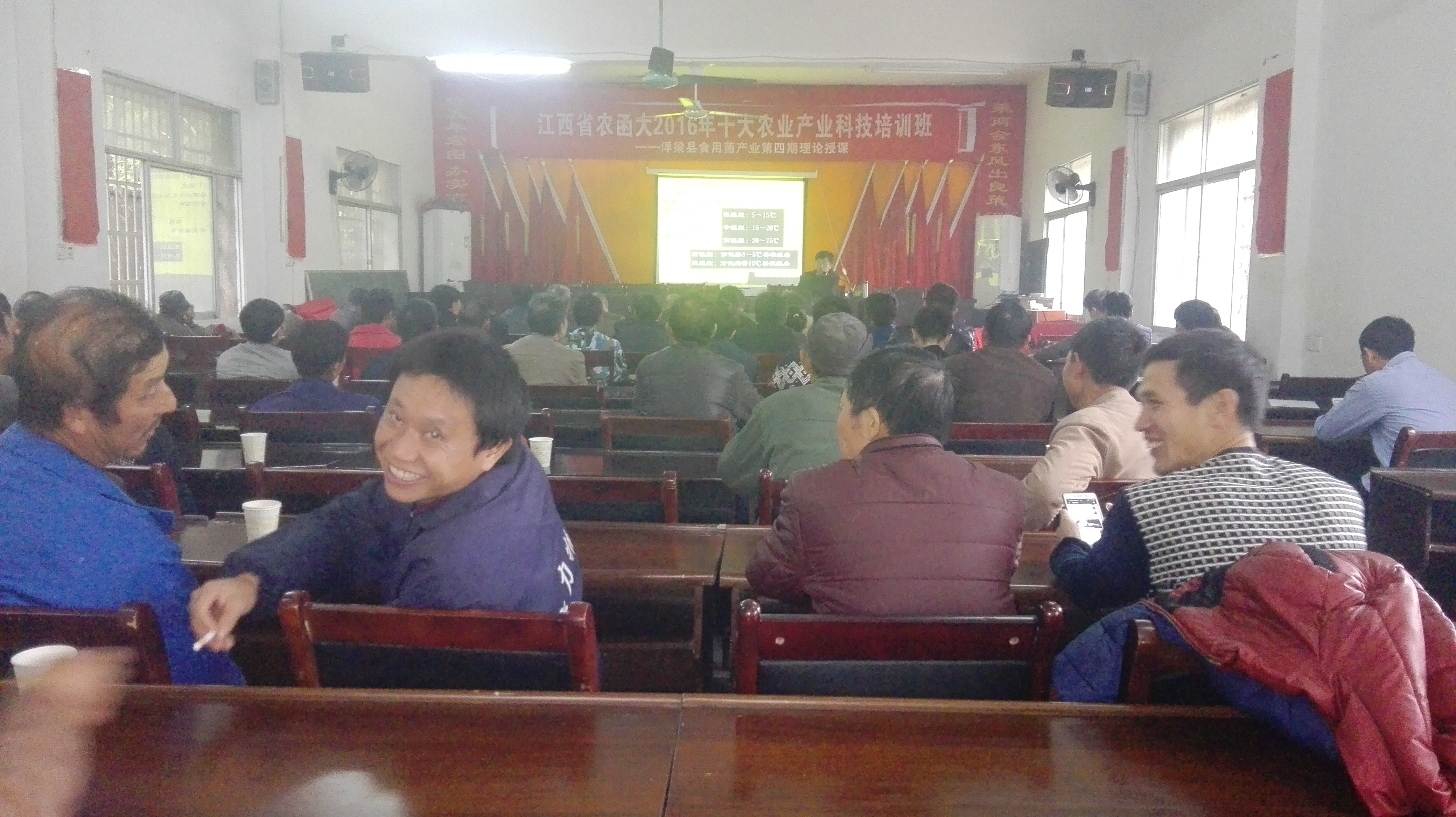 本期培训特邀浮梁县经济作物局副局长、县蔬菜办主任、农艺师戴益清老师为学员授课。培训主要以理论、实训相结合的教学模式。戴老师从食药用菌产业发展方向与基础技术为学员们上了一堂生动的课,让大家了解食用菌产业今后的发展方向。