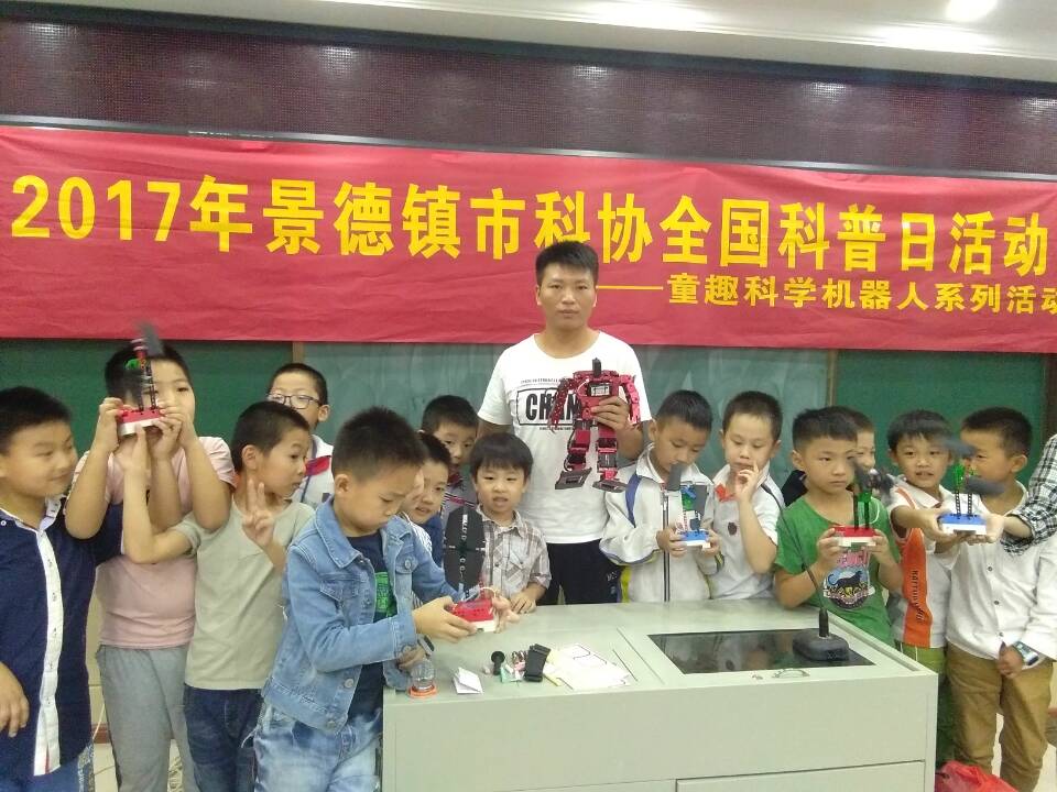 9月20日,2017年景德镇市全国科普日—-童趣科学机器人系列活动在景德镇市十七小学举行,此次活动由市科协主办,景德镇学院汽车科普基地大学生科协承办,60余名学生参与了本次机器人科普活动。