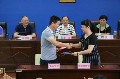 唐良与袁世军共同为仪式揭牌,景德镇中国陶瓷博物馆与景德镇市第五中学双方代表签署了合作共建书。